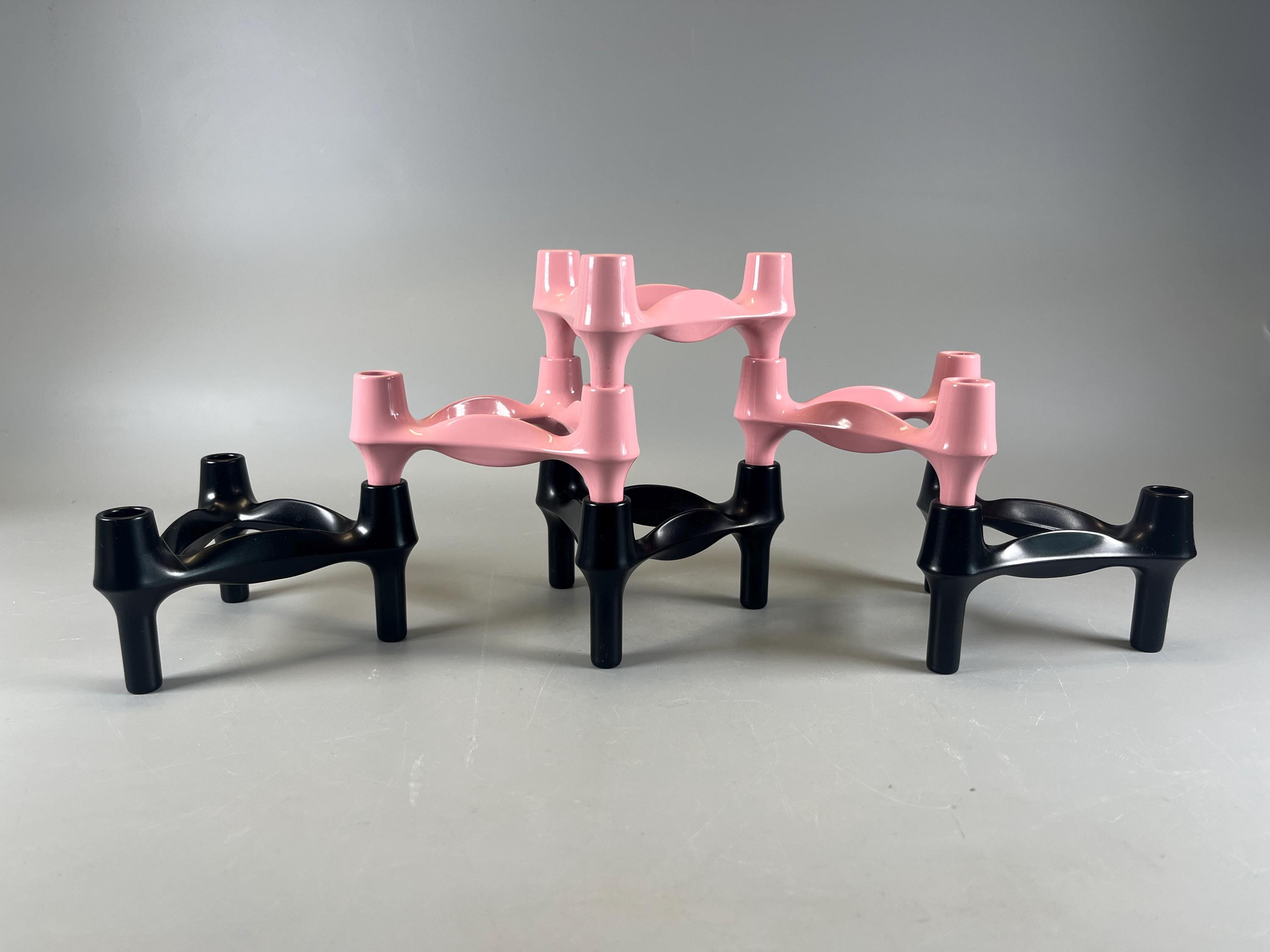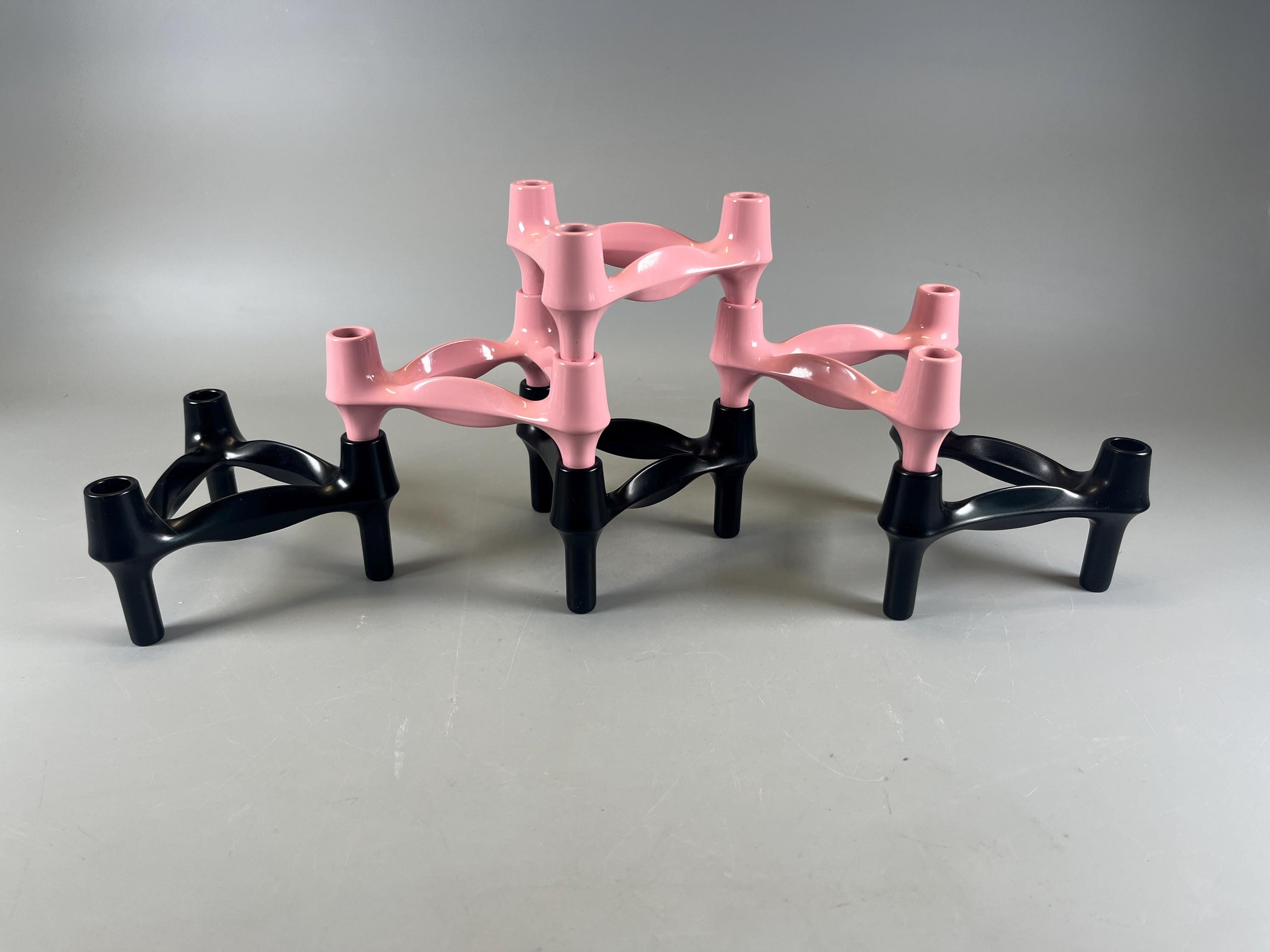 Pink or black candle holder set Candle holder for three candles each